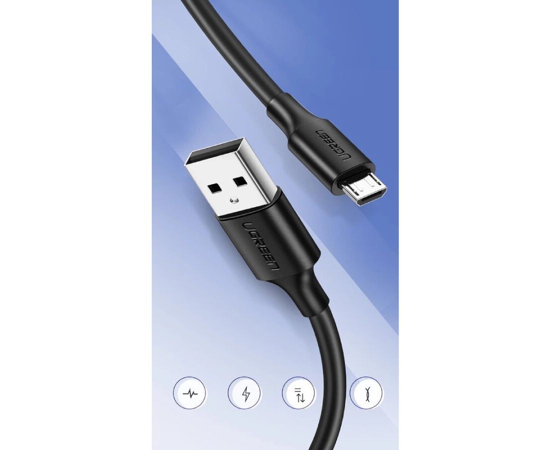 Кабель UGREEN US289 60135 USB 2.0 A to Micro USB Cable Nickel Plating 0.5m Black