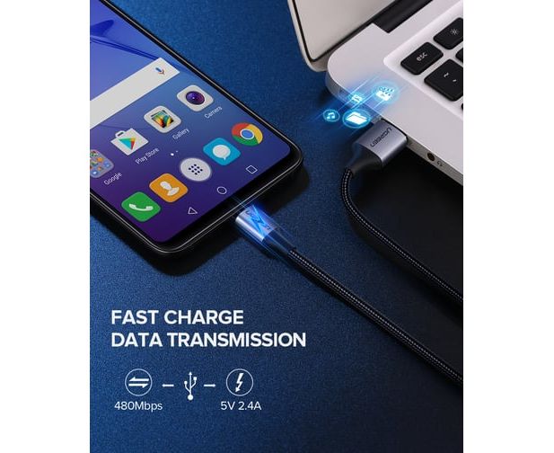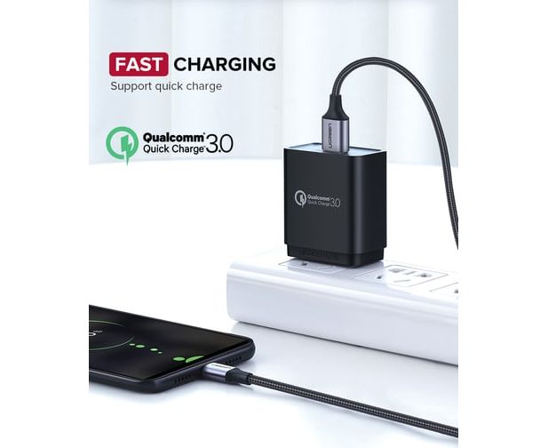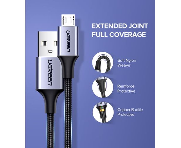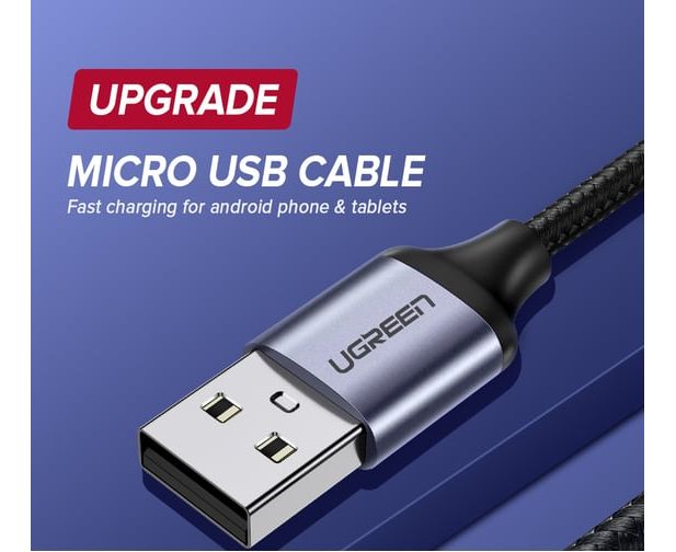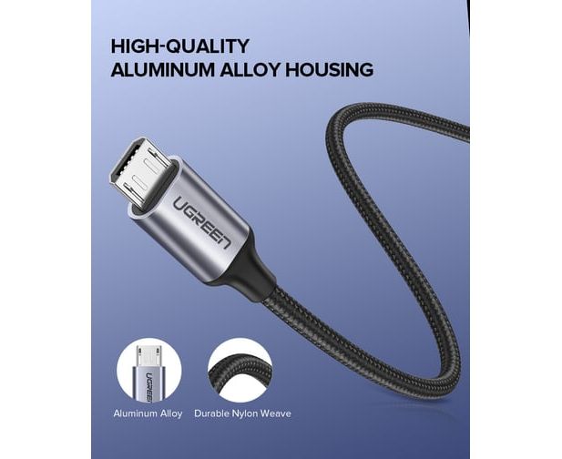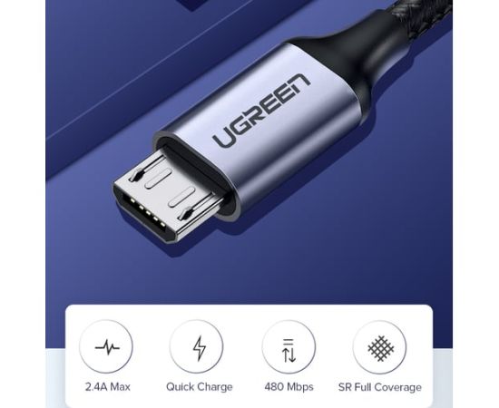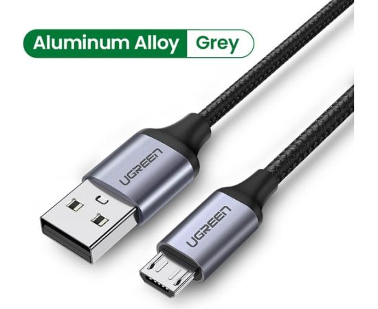 Кабель UGREEN US290 60147 USB 2.0 A to Micro USB Cable Nickel Plating Alu Braid 1,5m Grey/Black
