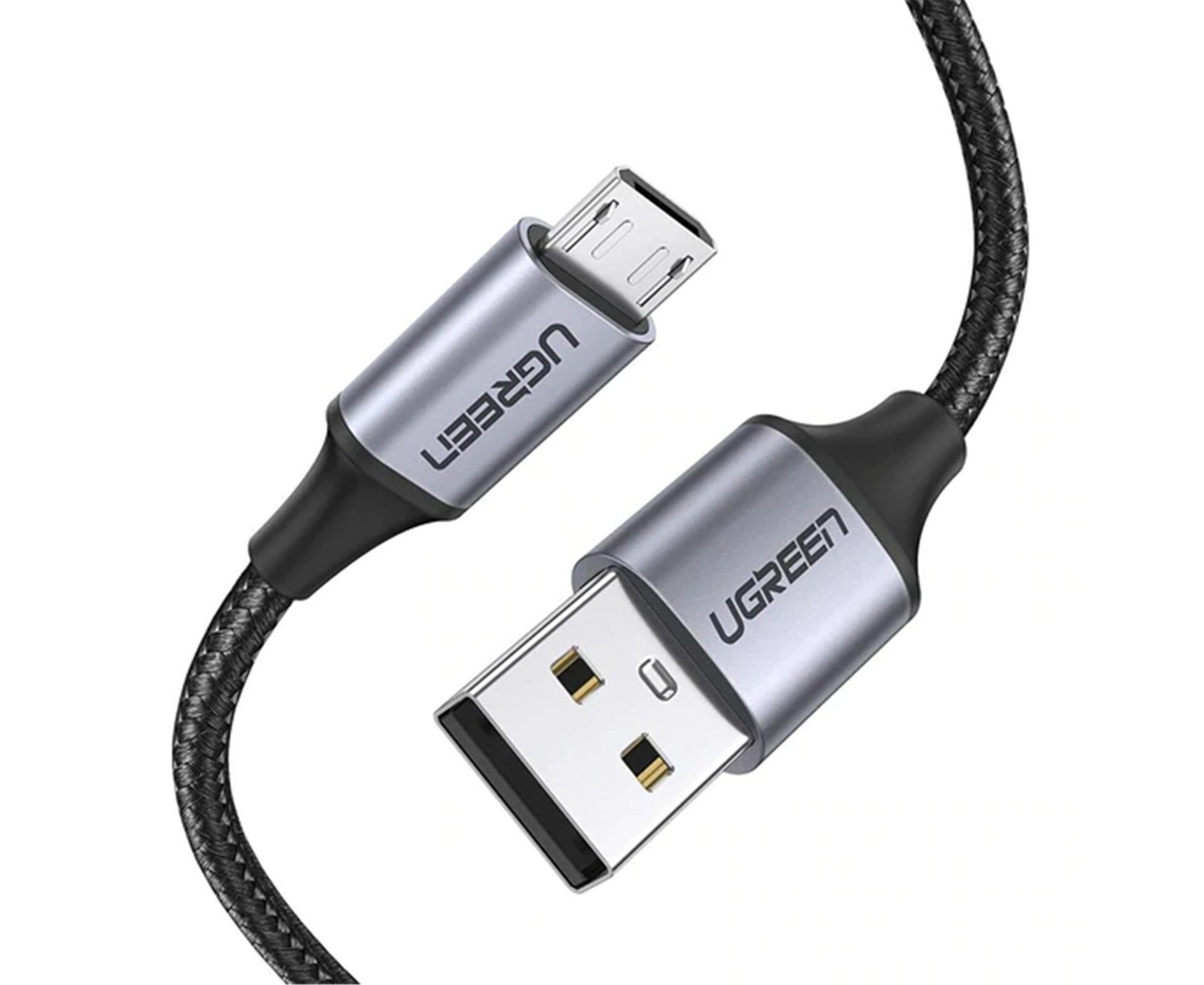 Кабель UGREEN US290 60148 USB 2.0 A to Micro USB Cable Nickel Plating Alu Braid 2m Grey/Black