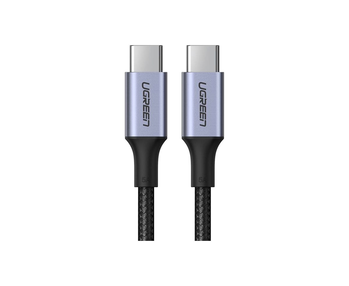 Кабель UGREEN US316 (15799P) 100W USB-C to USB-C PD Fast Charging Braided Cable 5A Max 0.25m 2pcs Gray