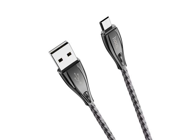Кабель USB HOCO U56 Metal armor USB-MicroUSB, 2.4А, 1.2м серый металлик