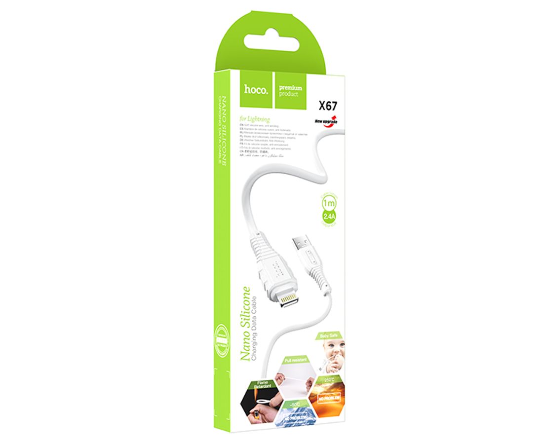 Кабель USB HOCO X67 Nano USB - Lightning, 2.4А, 1 м, белый