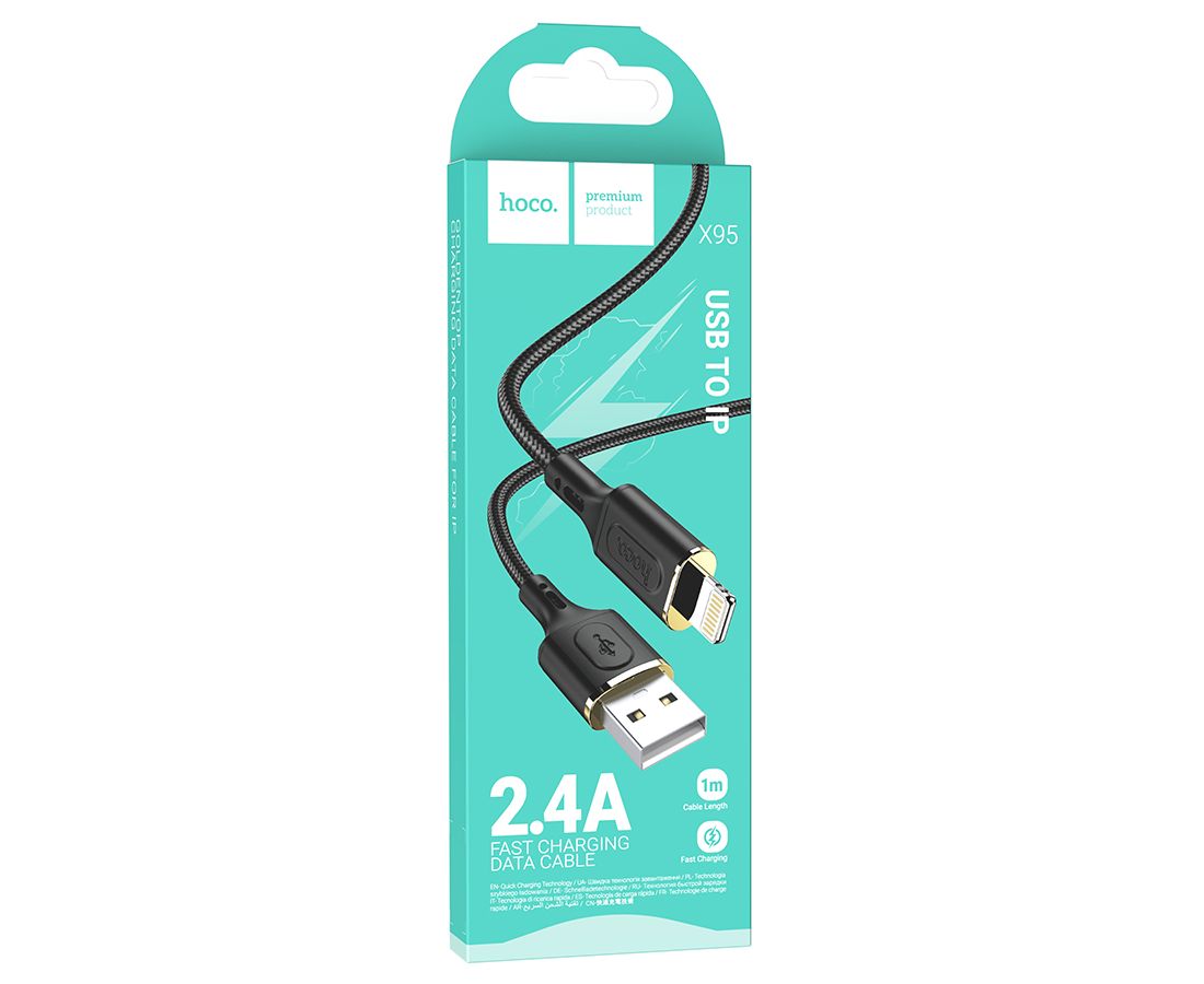 Кабель USB HOCO X95 Goldentop USB - Lightning, 2.4А, 1 м, черный
