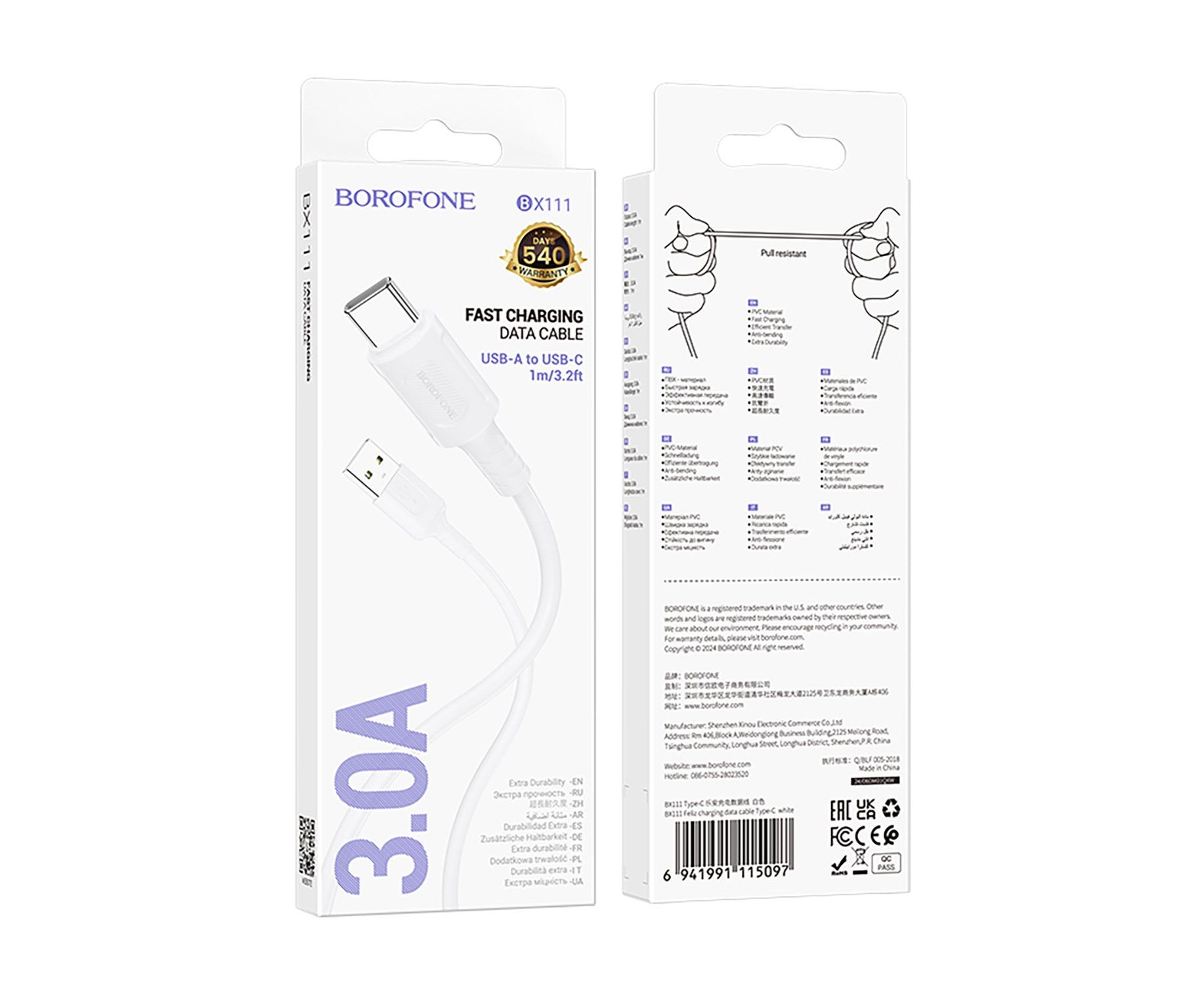 Кабель USB - Type-C Borofone BX111 Feliz 100см 3A (white) (235103)