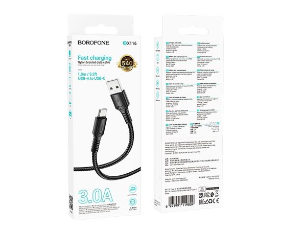 Кабель USB - Type-C Borofone BX116 Certain 18W 100см 3A (black) (240333)