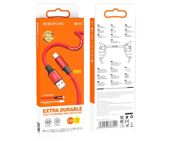 Кабель USB - Type-C Borofone BX82 Bountiful, 1.0м, круглый, 3.0A, силикон, цвет: красный (1/33/330)