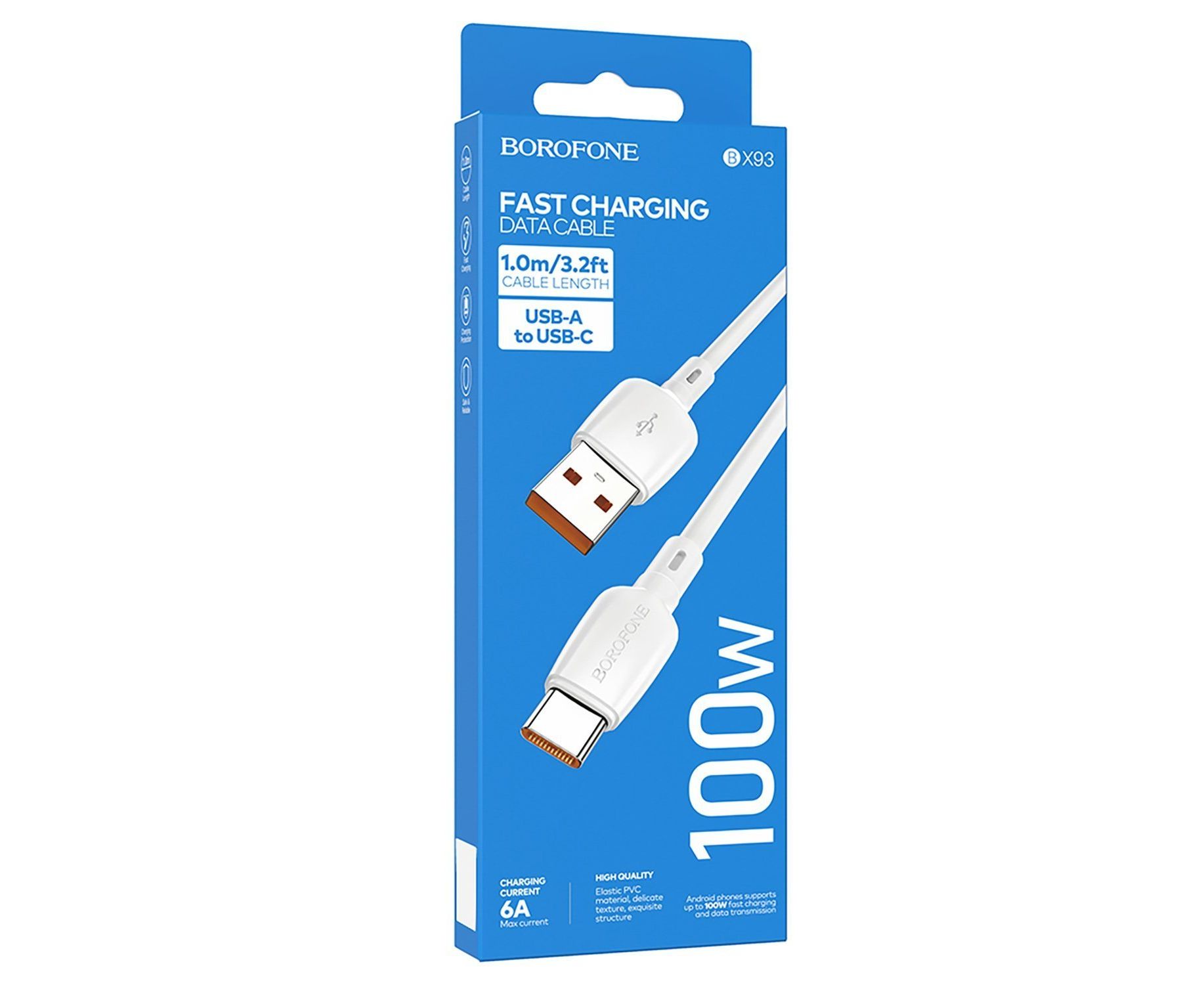 Кабель USB - Type-C Borofone BX93 Super PD 100W 100см 5A (white) (236316)