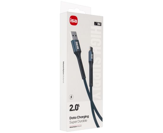Кабель USB - Type-C ISA BX-6, 2A 1m в нейлоновой оплетке (Blue)