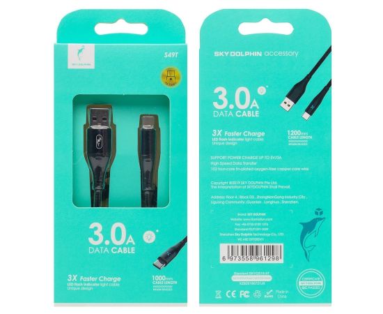 Кабель USB - Type-C SKYDOLPHIN S49T 100см 3A (black) (206509)