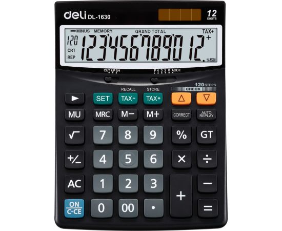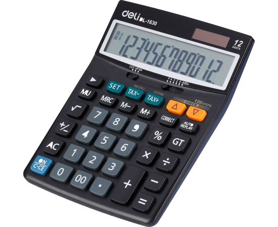 Бухгалтерский калькулятор Deli 1630 настольный в пластиковом корпусе с 12-разрядным ЖК-дисплеем. Имеет оптимальный набор вычислительных функций: основные математические операции, расчет процентов, извлечение квадратного корня, запоминание промежуточных результатов, вычисление налога и наценки. Позволяет корректировать введенное число. Удобная клавиатура снабжена кнопкой ввода двойного нуля. В калькуляторе имеется два источника питания. Размеры: 188х140х44 мм. В комплекте 1 батарейка LR44. 2VTB13