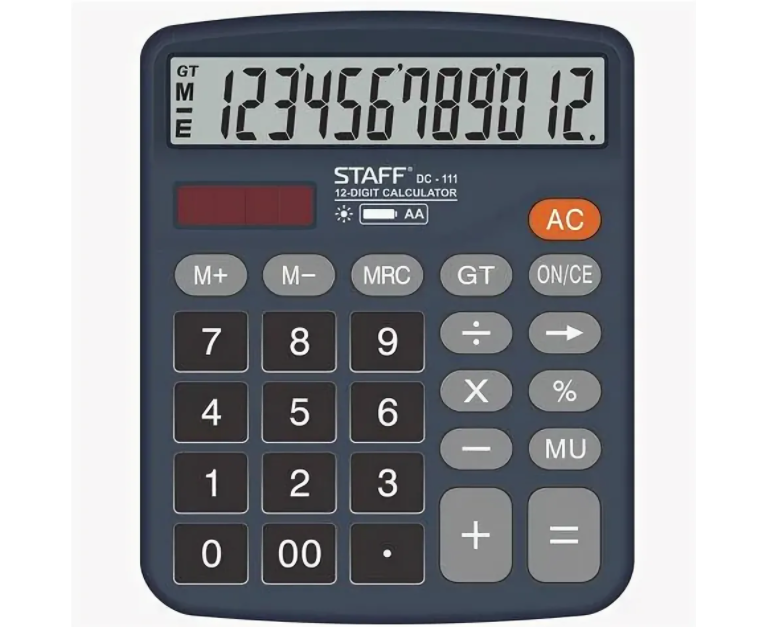 Простой в использовании и точный в расчётах настольный калькулятор STAFF PLUS STF-111 выполняет все необходимые вычисления на работе и дома. Кнопки нажимаются легко и приятно, эргономичный наклон корпуса позволяет работать с максимальным комфортом.
