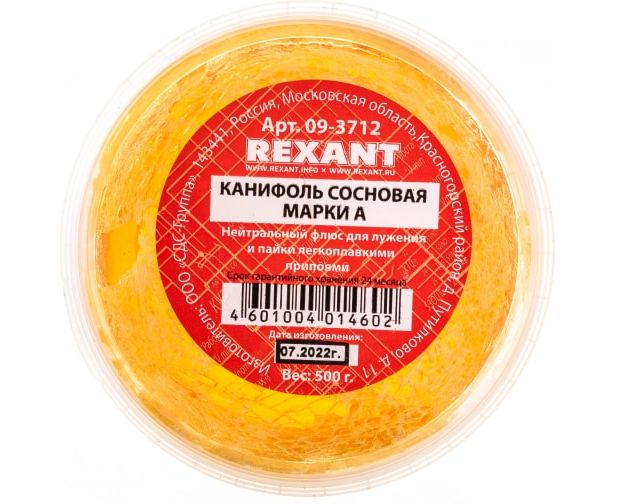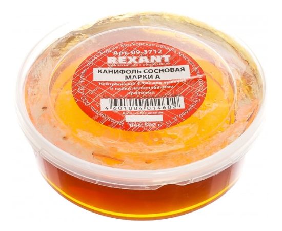Канифоль сосновая марки А REXANT предназначена для удаления тонких и нестойких оксидов с поверхности под пайку, улучшения растекания жидкого припоя при пайке печатных плат и радиокомпонентов. Изготовлена в соответствии с ГОСТ 19113-84.