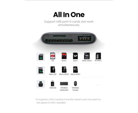 Выходной разъем: 1×SD слот для карты, 1×TF слот для карты, 1× USB-A 2.0