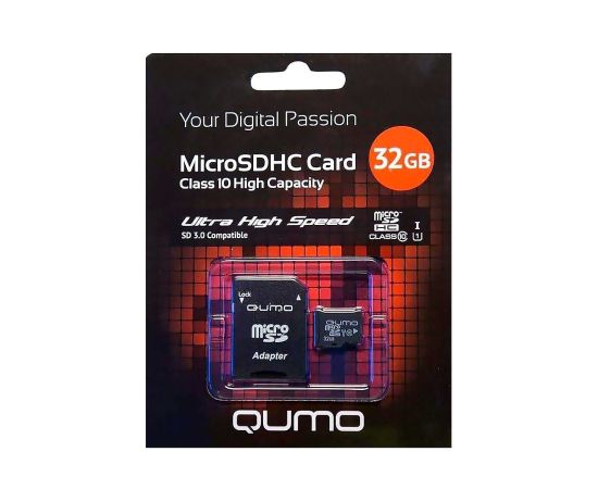 Карта флэш-памяти MicroSD 32 Гб Qumo +SD адаптер (class 10) UHS-1