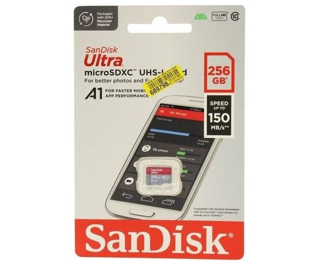 Карта памяти microSDXC SanDisk Ultra SDSQUAC-256G-GN6MN 256GB Class 10, UHS-I, R 150 МБ/с, без адаптера SD