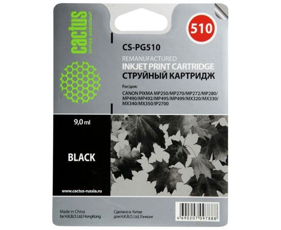 Картридж Cactus PG-510 (CS-PG510) струйный черный (15мл) для Canon Pixma MP240/MP250/MP260/MP270/MP480/MP490/MP492/MX320/MX330