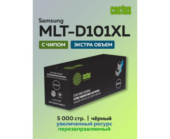 Картридж лазерный Cactus CS-D101S-MPS MLT-D101S черный 5000стр для Samsung ML-2160/2165/2167/2168/SCX-3400/3405
