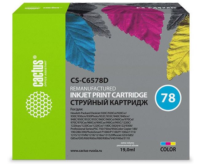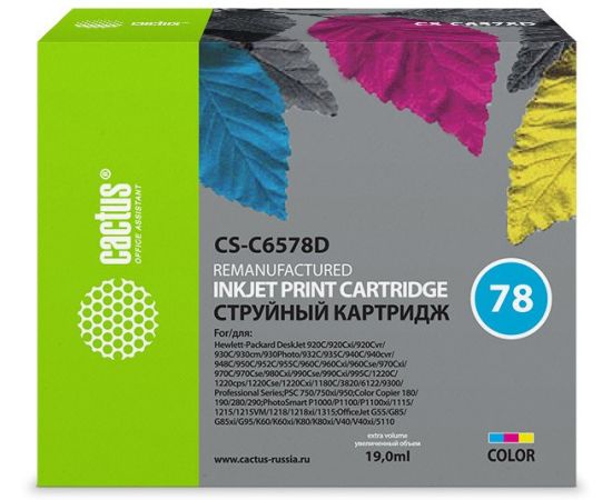 Картридж струйный Cactus CS-C6578D №78 голубой/пурпурный/желтый 19мл для HP DJ 900/1220C/PS P000/P1100