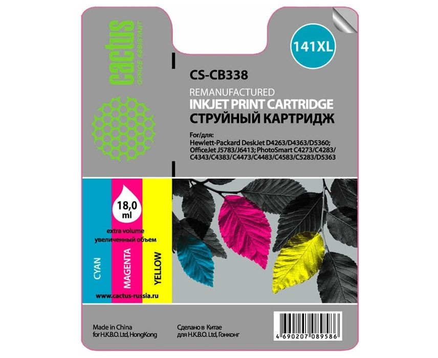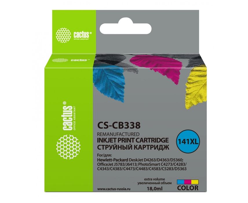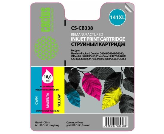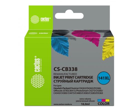 Картридж струйный Cactus CS-CB338 трехцветный для №141XL HP DeskJet D4263/D4363/D5360 (18ml)