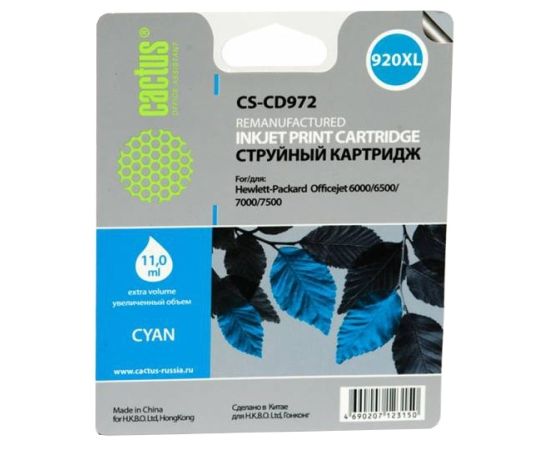 Картридж струйный Cactus CS-CD972 синий для №920XL HP Officejet 6000/6500/7000/7500 (11ml)