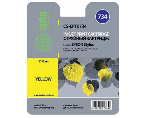 Картридж струйный Cactus CS-EPT0734 желтый для Epson Stylus С79/ C110/ СХ3900/CX4900/CX5900 (11,4ml)