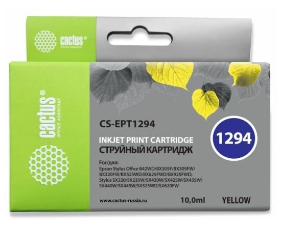 Картридж струйный Cactus CS-EPT1294 желтый для Epson Stylus Office B42/BX305/BX305F (10ml)