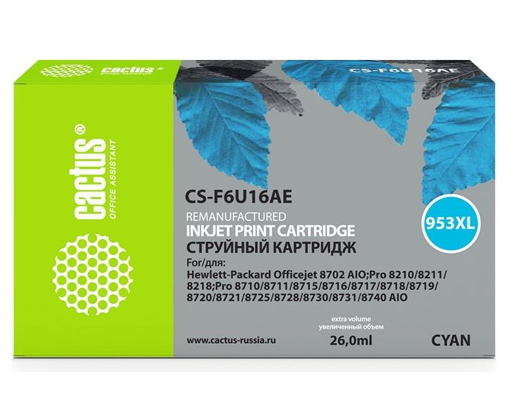Картридж струйный Cactus CS-F6U16AE-R 953XL голубой 24мл для HP OJ Pro 7740/8210/8218/8710/8715