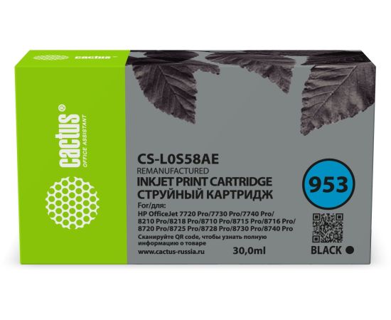 Картридж струйный Cactus CS-L0S58AE 953 черный (30мл) для HP OJ 7720 Pro/7730/7740/8210