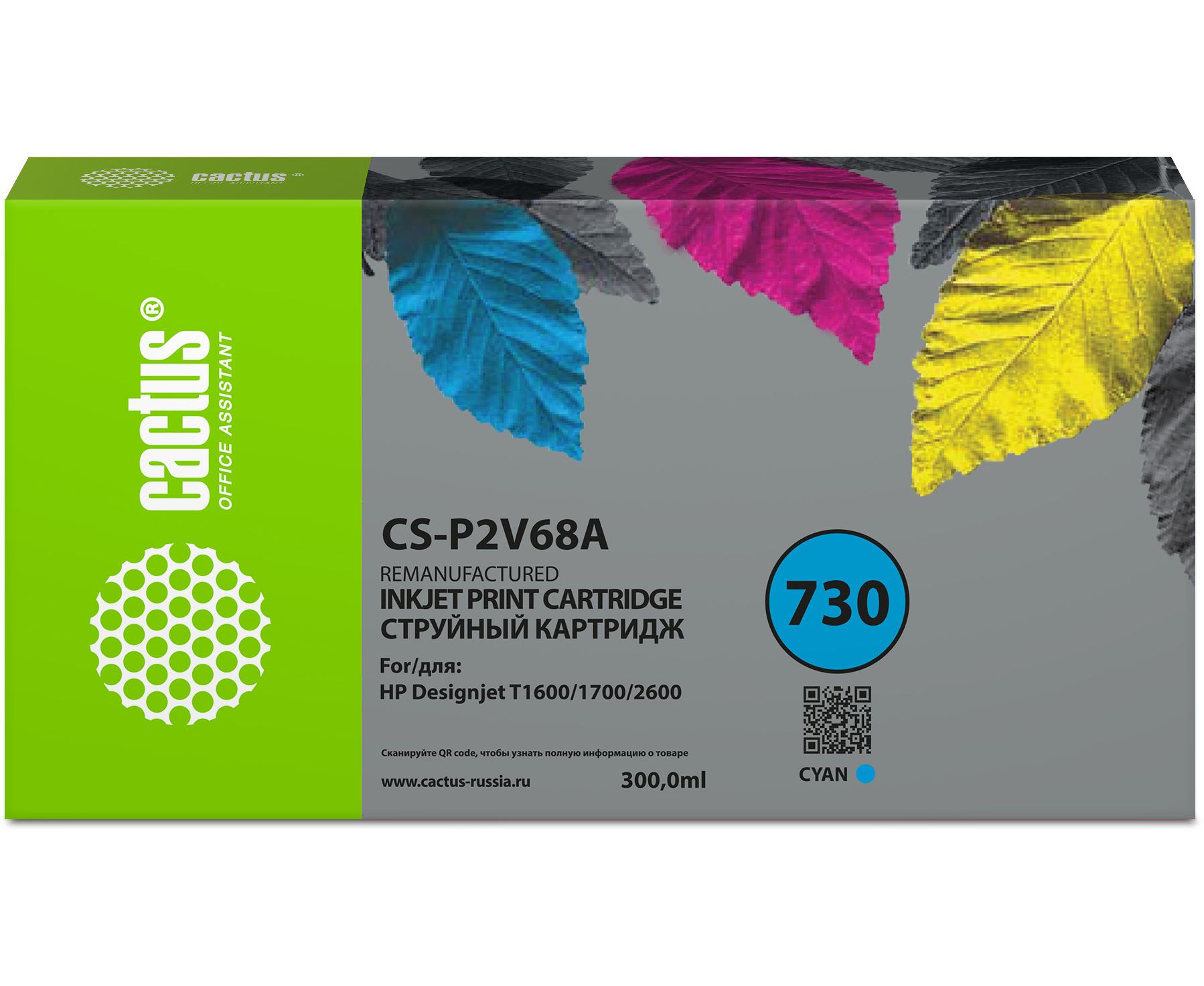 Картридж струйный Cactus CS-P2V68A №730 голубой 300мл для HP Designjet T1600/1700/2600