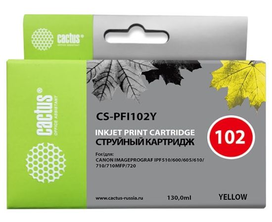 Картридж струйный Cactus CS-PFI102Y желтый (130мл) для Canon IP iPF500/iPF600/iPF700/MFP M40/iPF765/LP17/LP24