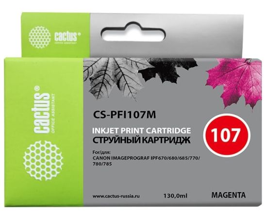 Картридж струйный Cactus CS-PFI107M пурпурный (130мл) для Canon IP iPF670/iPF680/iPF685/iPF770/iPF780/iPF785/