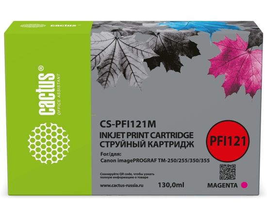 Картридж струйный Cactus CS-PFI121M PFI-121 M пурп.пигм. 130мл для Canon imagePrograf TM-250/255/350/355