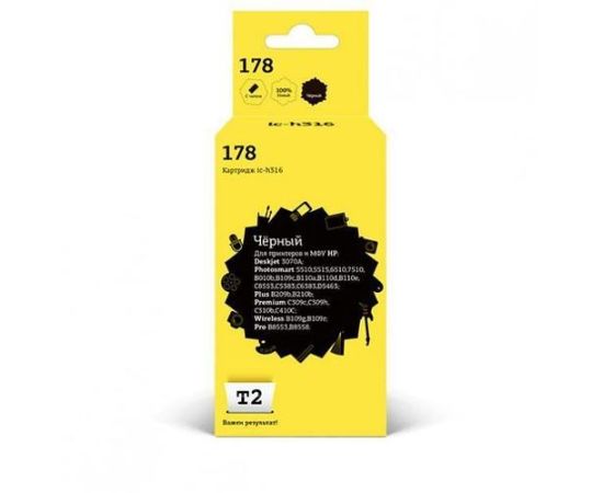 Картридж T2 CB316HE/№178 №178 для HP Deskjet 3070A/Photosmart 5510/6510/7510/B110/C8583, черный, С ЧИПОМ, 250 стр.