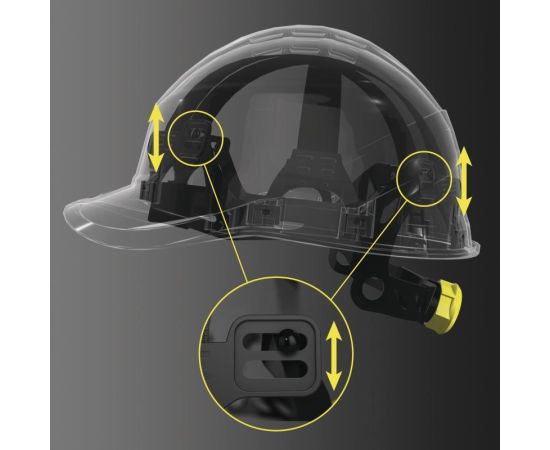 Каска регулируется по обхвату головы от 53 до 64 см при помощи системы затяжения ROTOR.