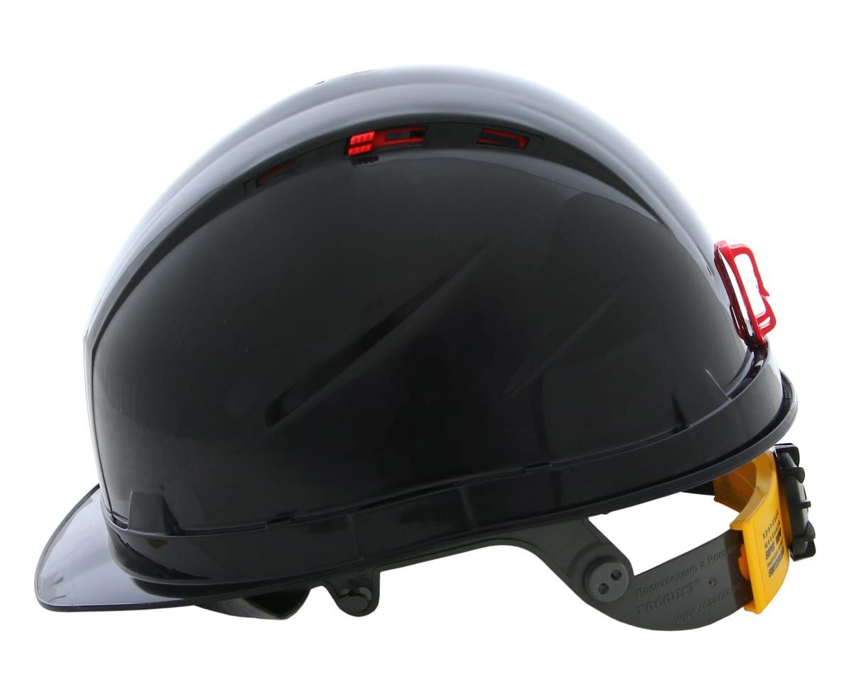 Для совместного ношения с защитными лицевыми щитками (с креплением на каске) и наушниками противошумными (с креплением на каске) предусмотрены пазы в корпусе каски.