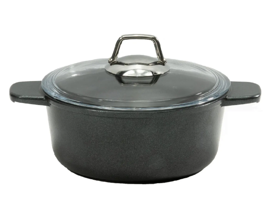 Кастрюля универсальная Victoria Престиж (P08 4,0G) 4,0л со стеклянной крышкой серо-голубая