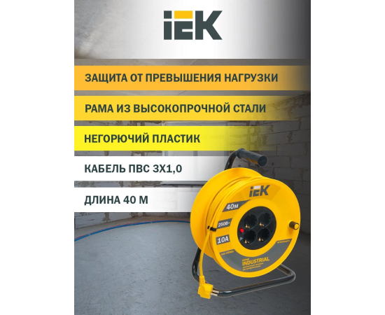 Катушка IEK WKP10-10-04-40-G УК40 с т/з 4 места 2P+PE/40м 3х1,0мм2 Generica