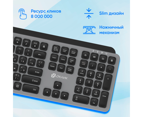 Клавиатура OKLICK K859W серый/черный