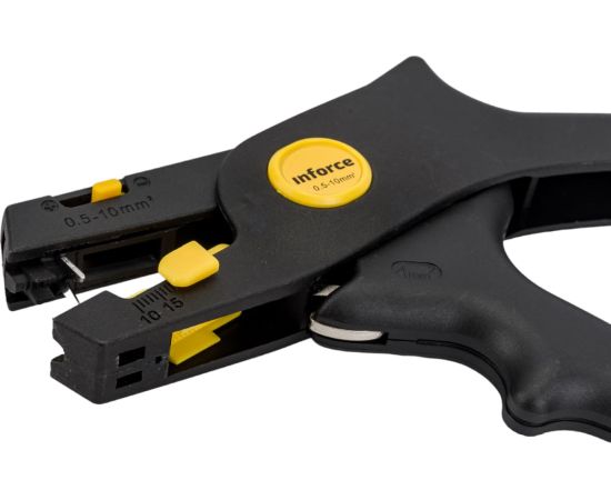 Инструмент для снятия изоляции Inforce 0,5-10 мм2 06-19-14 служит для зачистки изоляции различных типов. Предназначен для работы с моножильными проводами диаметром до 3.5 мм.