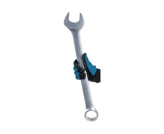 Комбинированный ключ используется в автосервисах, автомастерских и т.д. Инструментальная легированная хром-ванадиевая сталь специального сплава увеличивает рабочий ресурс инструмента. Хромированное покрытие защищает от коррозии. Наличие двух головок разного профиля расширяют сферу применения. Благодаря специальному изгибу в 15 градусов, можно работать в ограниченном пространстве.