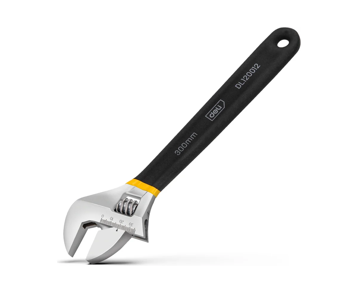 Разводной ключ 300 мм Deli DL120012 – профессиональный инструмент для тяжелых монтажных работ.