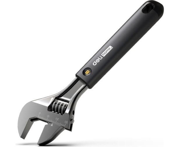 Ключ разводной Deli HT1508 Home Series Black 200мм, эксклюзивный дизайн, рукоятка из высококачественного софттач пластика