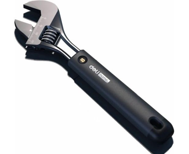 Разводной ключ DELI Home Series Black HT1508 200 мм, Soft Touch рукоять, лазерная гравировка шкалы, эксклюзивный дизайн, подарочная упаковка 104610 используется для вращения гаек, болтов в процессе различных ремонтных и монтажных работ.
