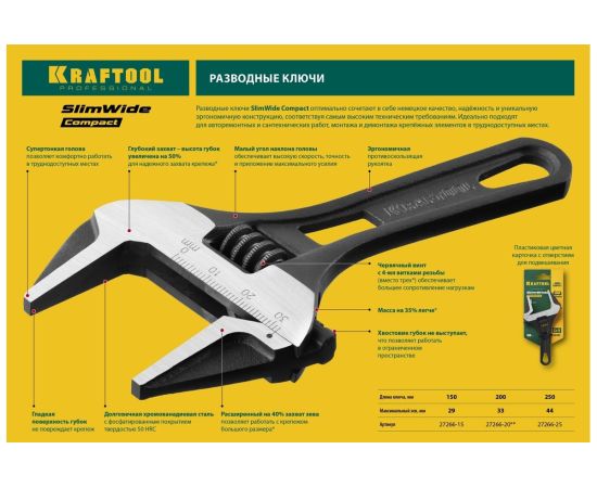 Ключ разводной KRAFTOOL SlimWide Compact 27266-15 120/28 мм