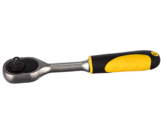 Трещоточный ключ 1/4 дюйма, 150мм, 45 зубьев TOPEX 38D501 используется при работе с головками и битами. Наличие флажкового переключателя допускает вращение инструмента в обе стороны. Рукоятка не скользит в руках.