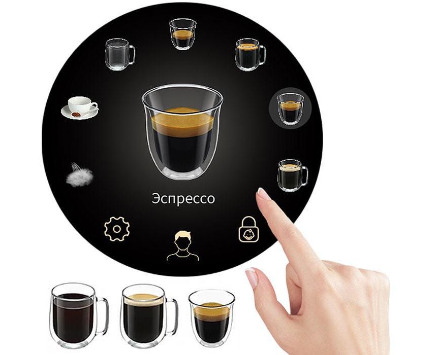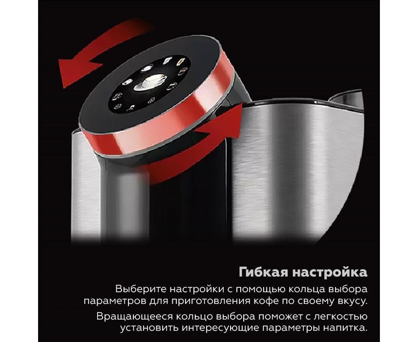 Дополнительные функции Дисплей, Капучинатор для молока, Кофемолка, Подача горячей воды для чая, Поддон для капель, Программирование температуры воды, Регулировка крепости кофе (степени помола)