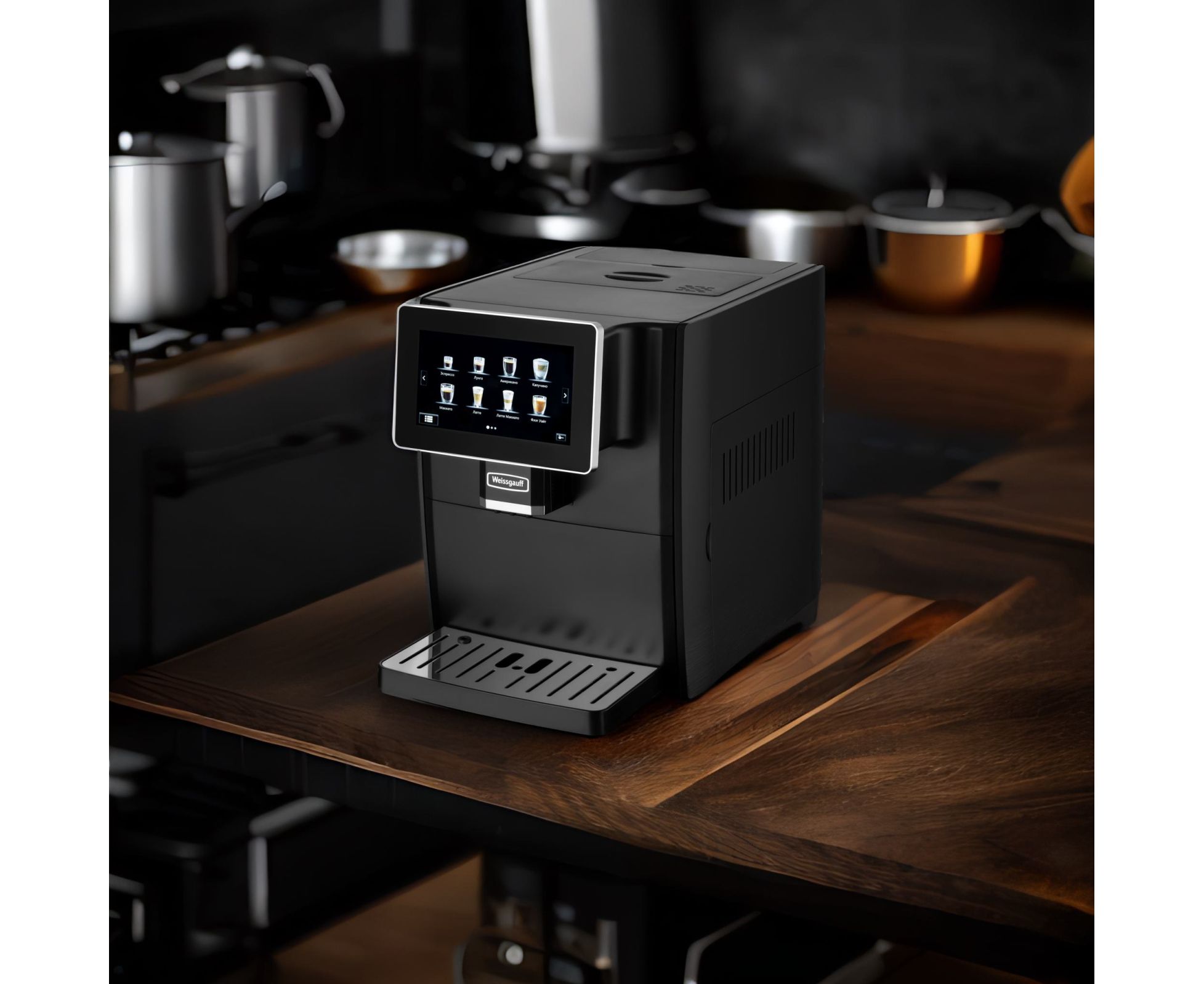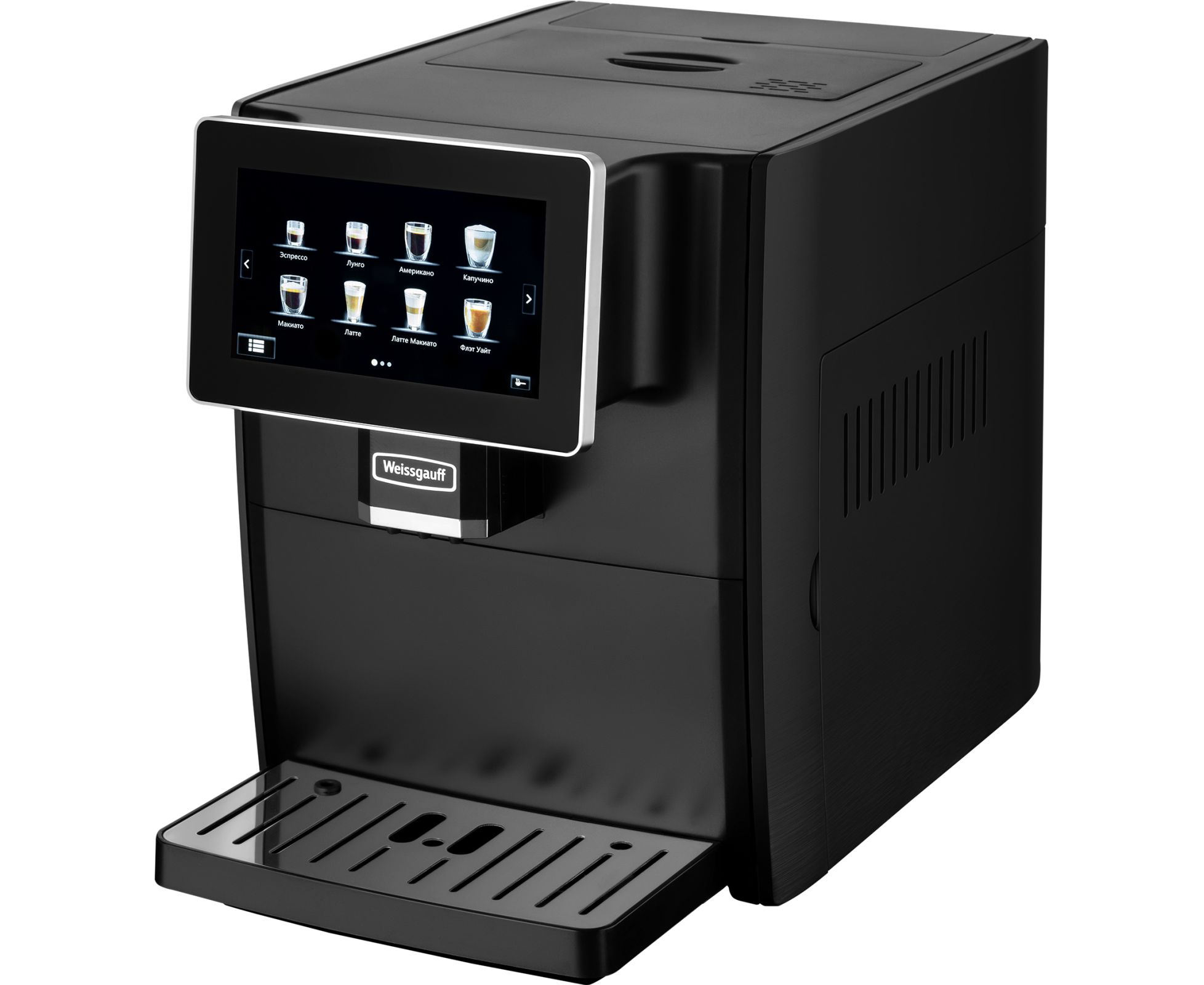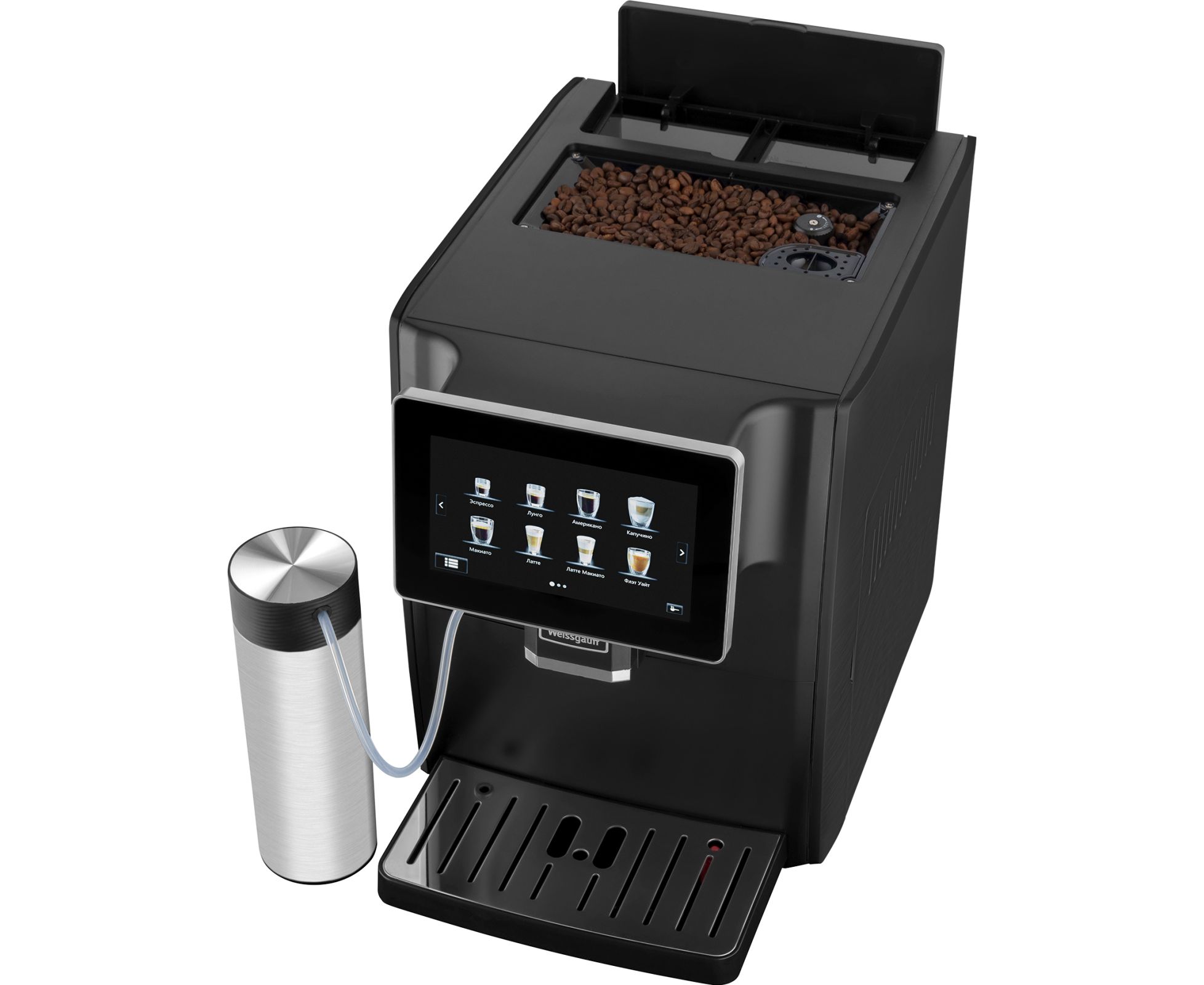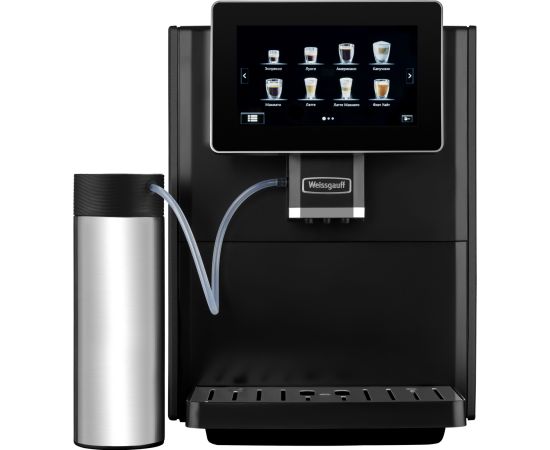 Кофемашина от Weissgauff, выполненная в черном цвете, оснащенная вместительным контейнером для зерен на 160 граммов и емкостью для молотого кофе на 10 порций, обладающая цветным сенсорным дисплеем, системой подачи молока с капучинатором, внешней емкостью для молока, а также 8 заранее предустановленными программами для приготовления ароматного вкуснейшего кофе прямо на вашей кухне!