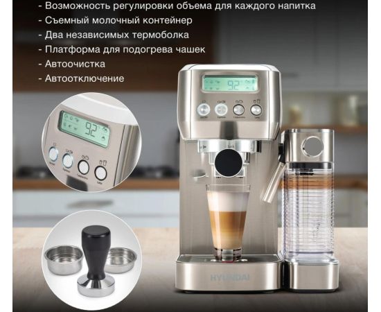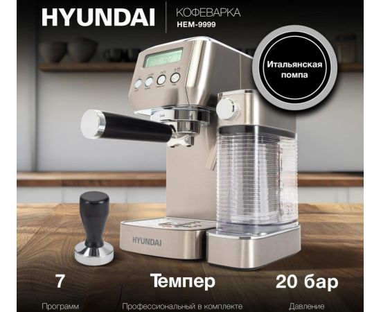 Кофеварка рожковая Hyundai HEM-9999 серебристый