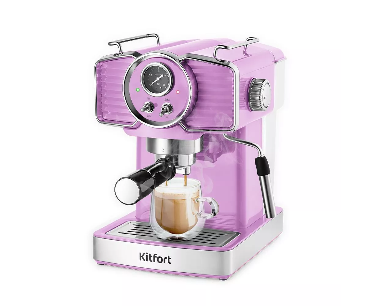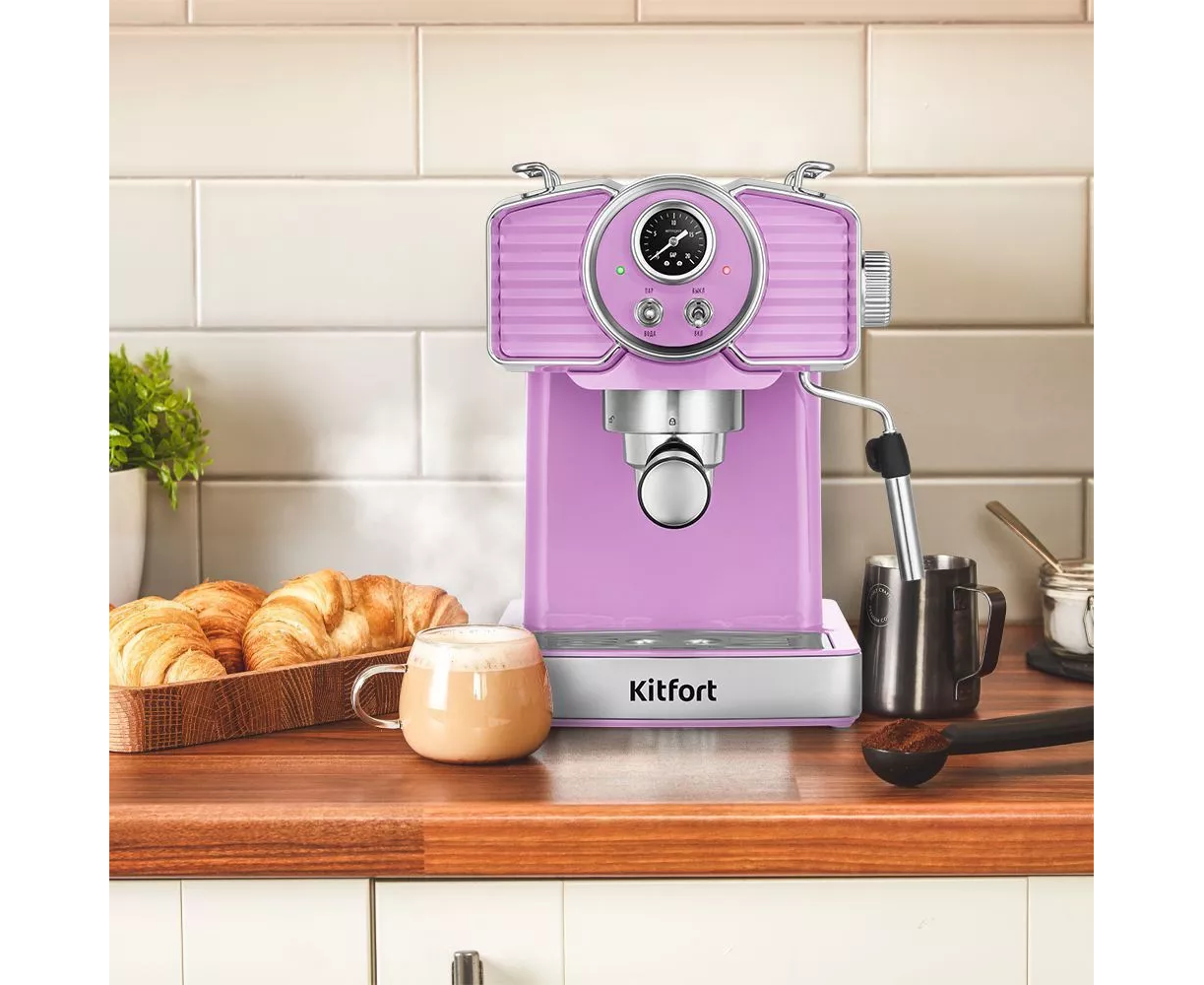 Кофеварка рожковая Kitfort КТ-7125-3 лавандовый 1465Вт