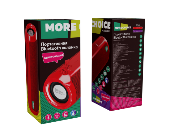 Колонка Bluetooth 5.1 2*5W 1800mAh More Choice BS22 (Red)